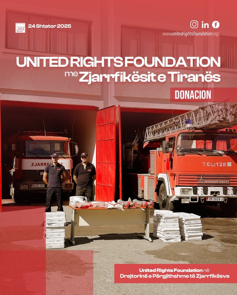 United Rights Foundation realizoi një donacion për Zjarrfikësit e Tiranës, duke i mbështetur me mjete dhe pajisje që përmirësojnë kushtet e punës dhe rrisin sigurinë e tyre gjatë përballjes me situata emergjente. Ky veprim është shprehje e mirënjohjes dhe respektit tonë ndaj njerëzve që çdo ditë rrezikojnë jetën për të shpëtuar të tjerët.